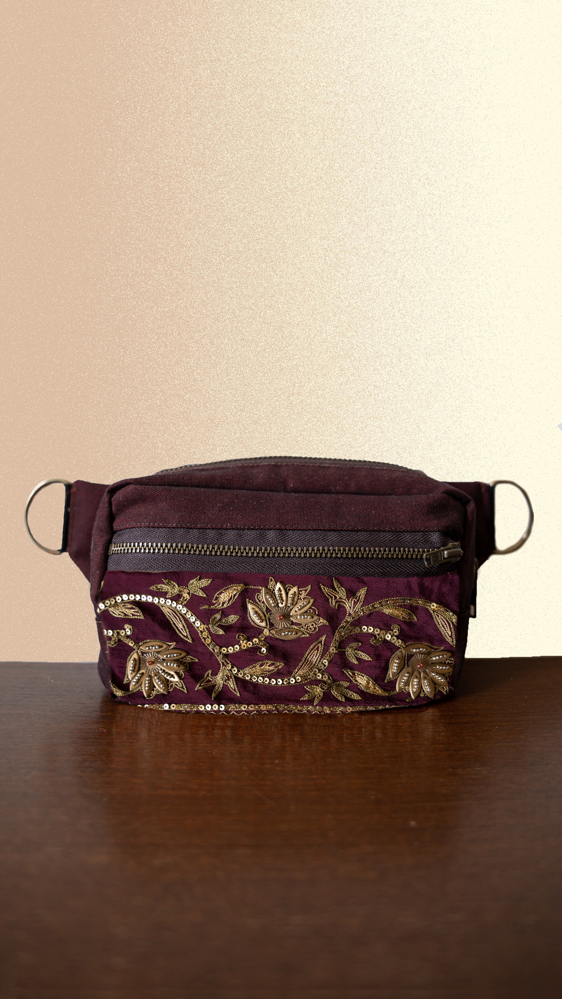 Carry life's essentials & make a statement with this burgundy twill fanny pack/bum bag.