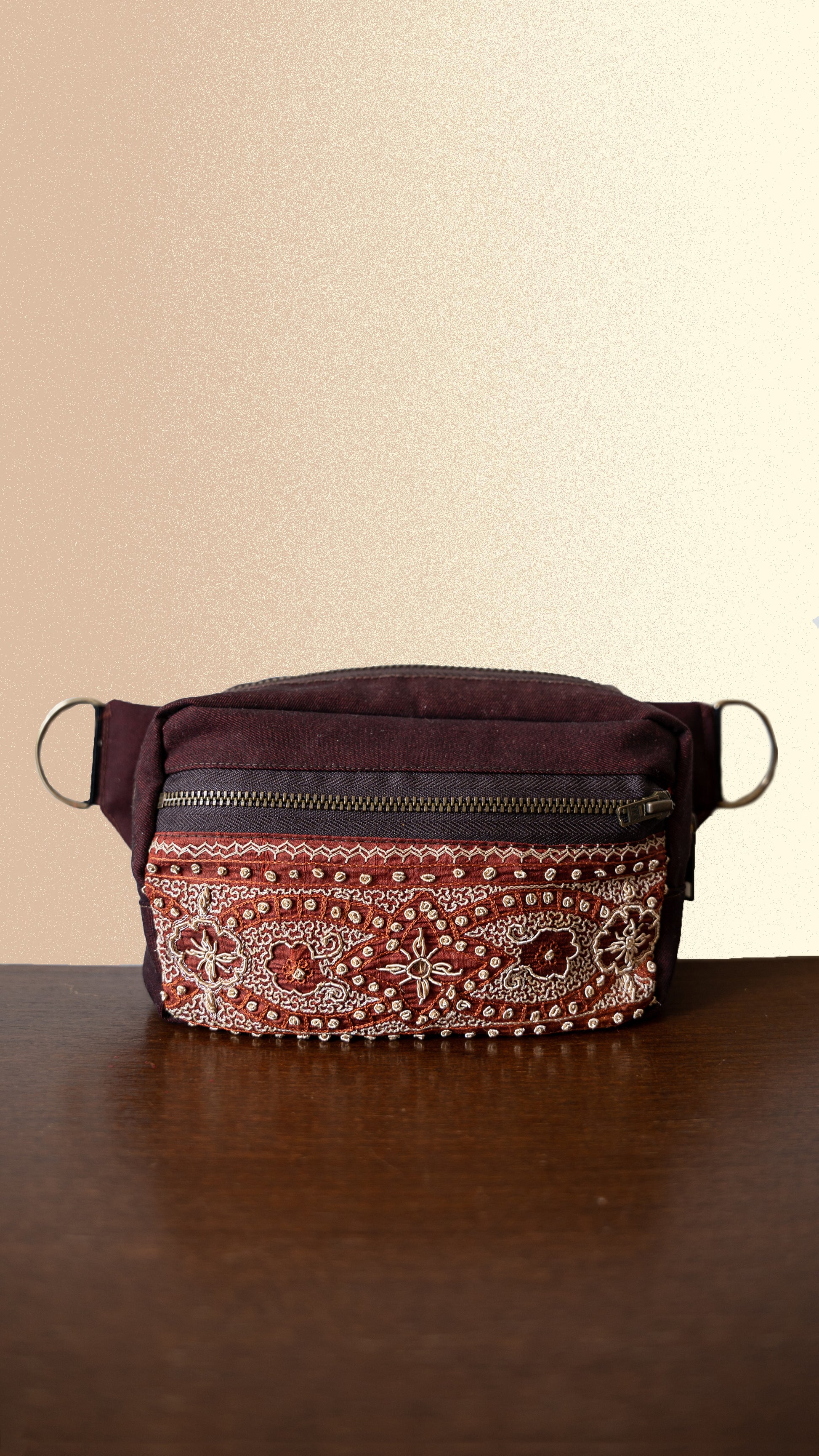 Carry life's essentials & make a statement with this burgundy twill fanny pack/bum bag.